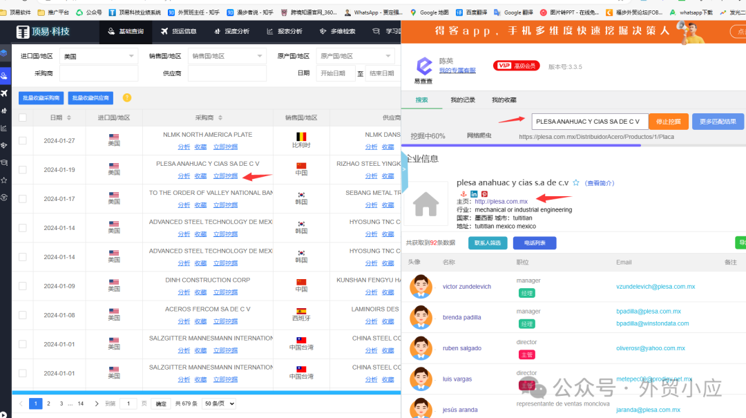 可以搜全球各国的客户,包括:公司名,地址,电话,邮箱等。 数据可以批量导出。